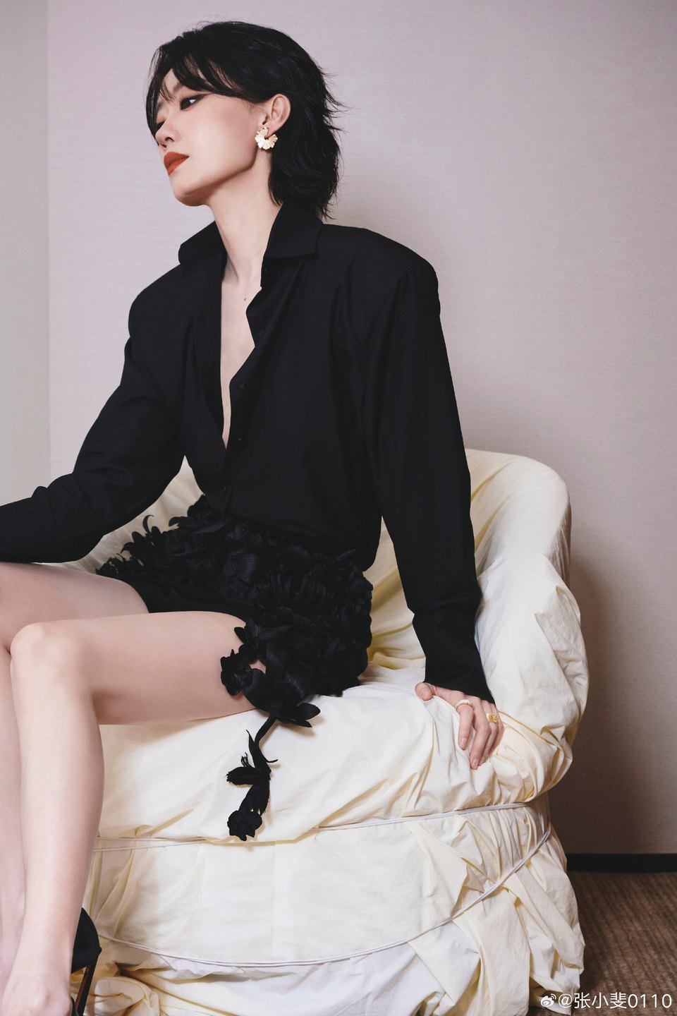 张小斐黑色短裤露长腿 眼神犀利女王范十足