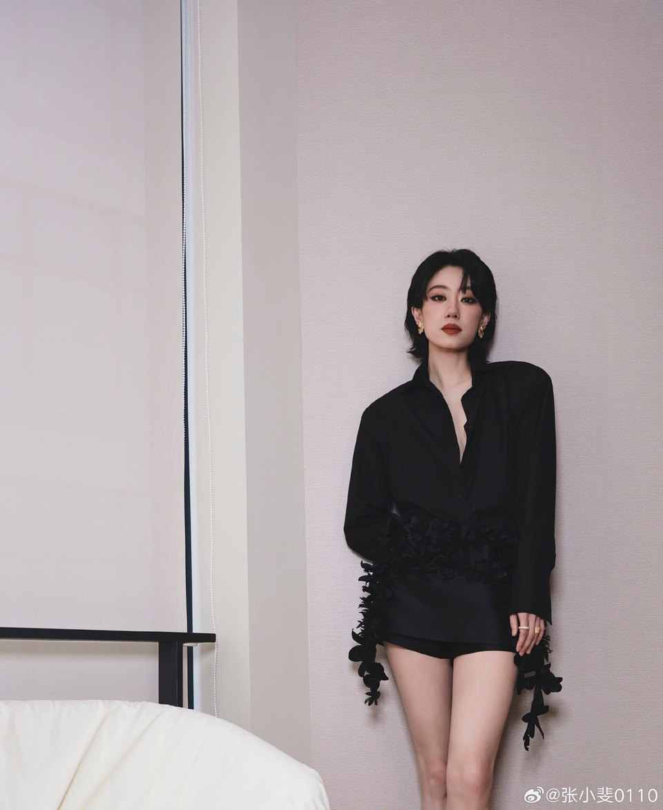 张小斐黑色短裤露长腿 眼神犀利女王范十足