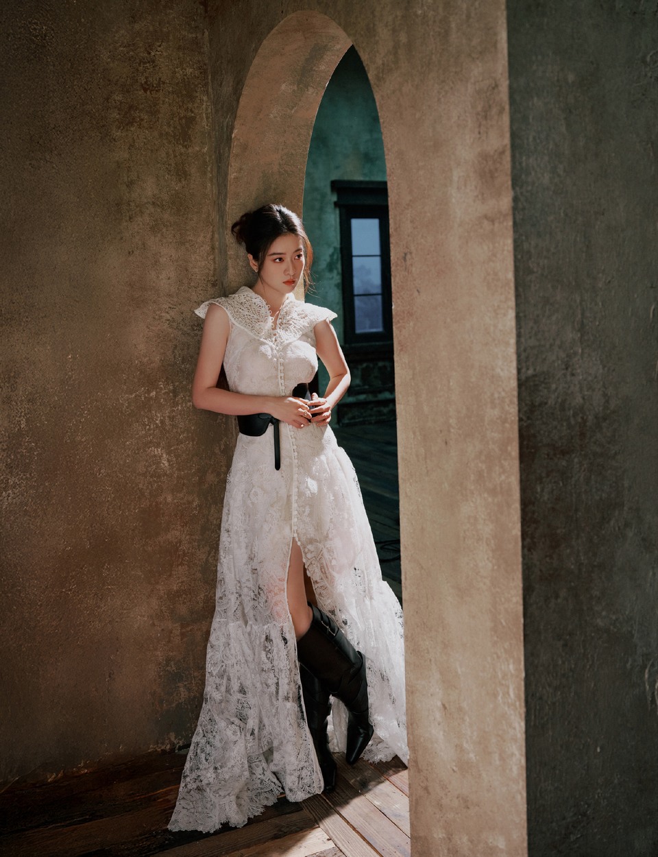 陈卓璇一袭白纱缀以蕾丝细语