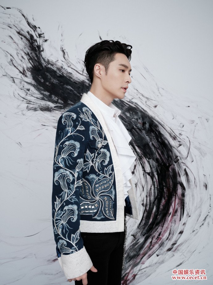 张艺兴水墨画国风大片 蓝色丝绒印花外套超吸睛