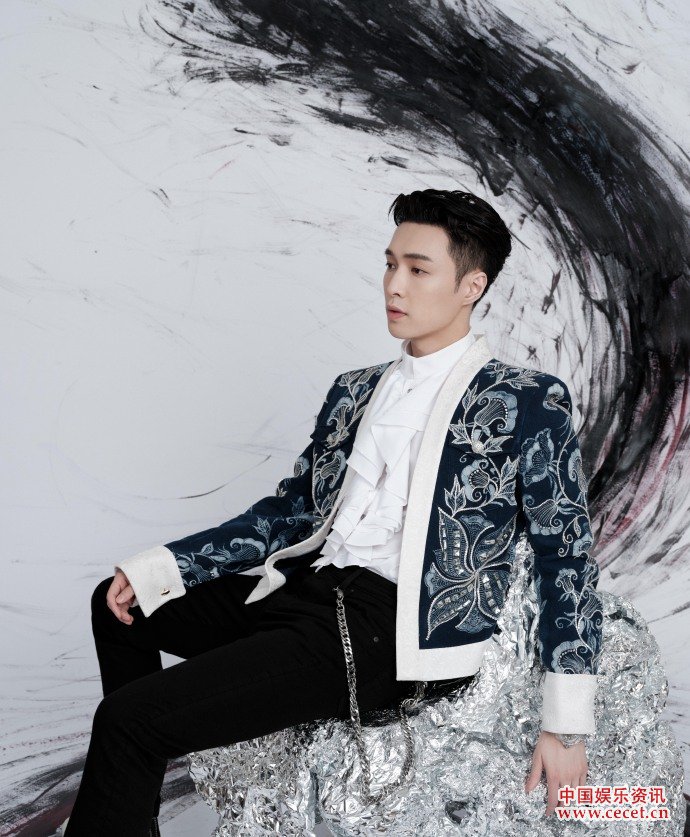 张艺兴水墨画国风大片 蓝色丝绒印花外套超吸睛