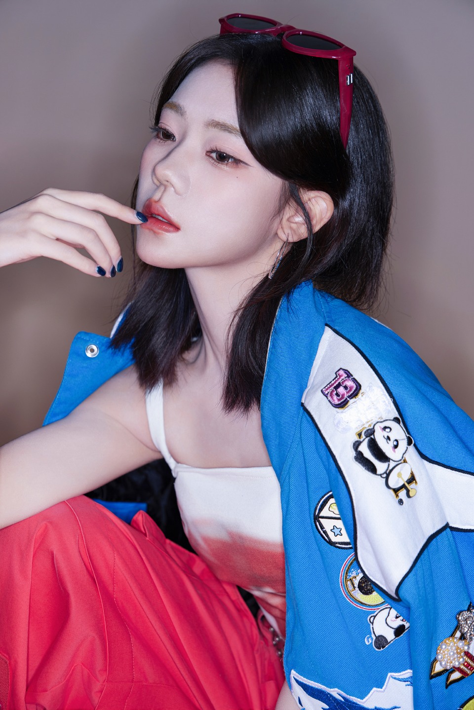 张紫宁少女与棒球交互 红蓝碰撞彰显前卫酷飒风格