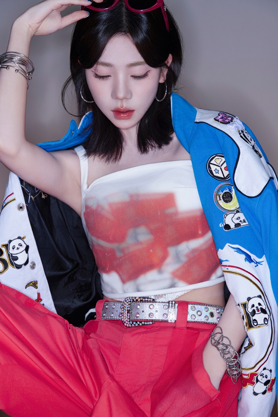 张紫宁少女与棒球交互 红蓝碰撞彰显前卫酷飒风格