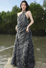 张紫宁羽翼镶嵌铺陈披肩 如落在人间的黑精灵