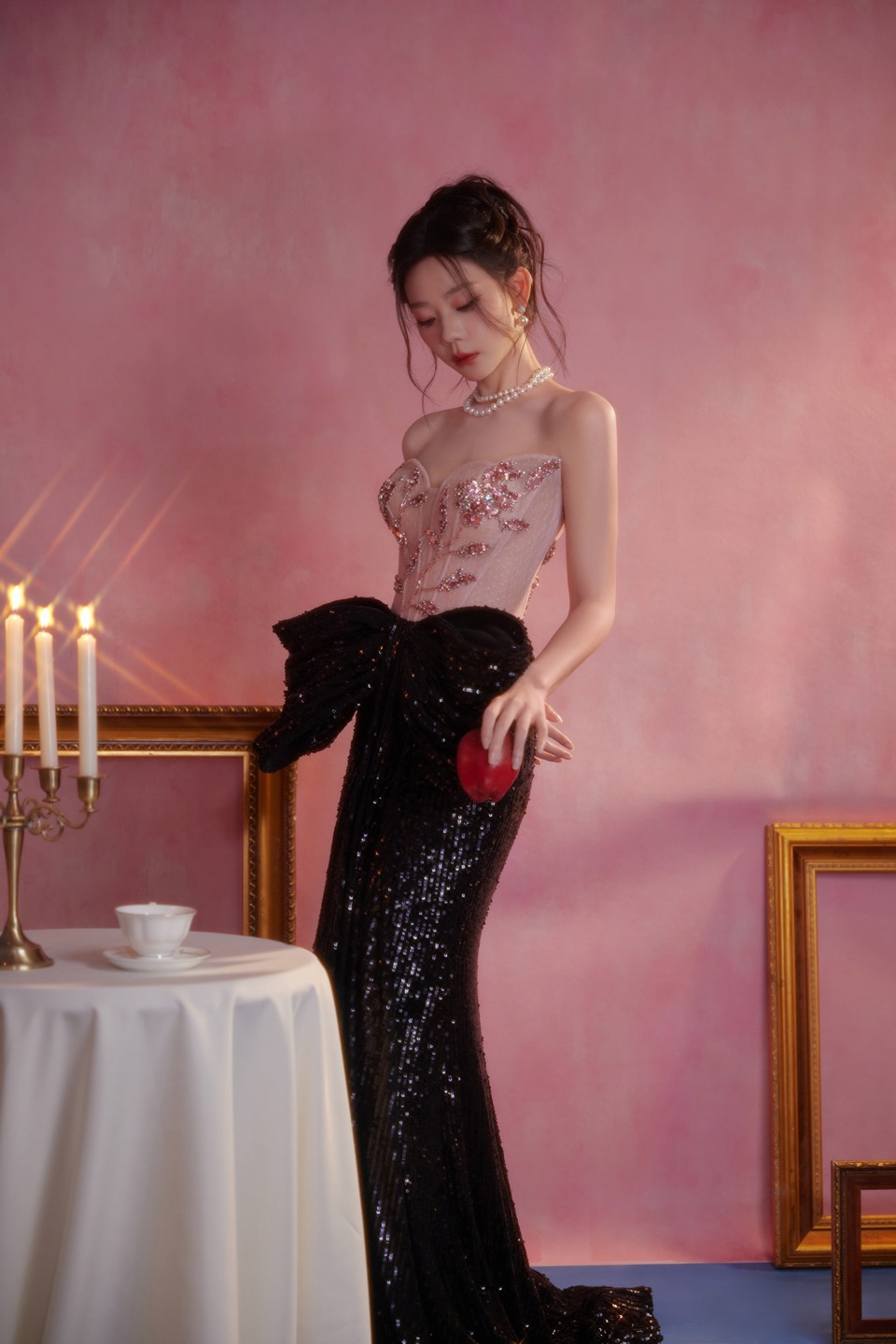 张紫宁淡粉邂逅一场暗夜 裙摆摇曳是闪耀的信号