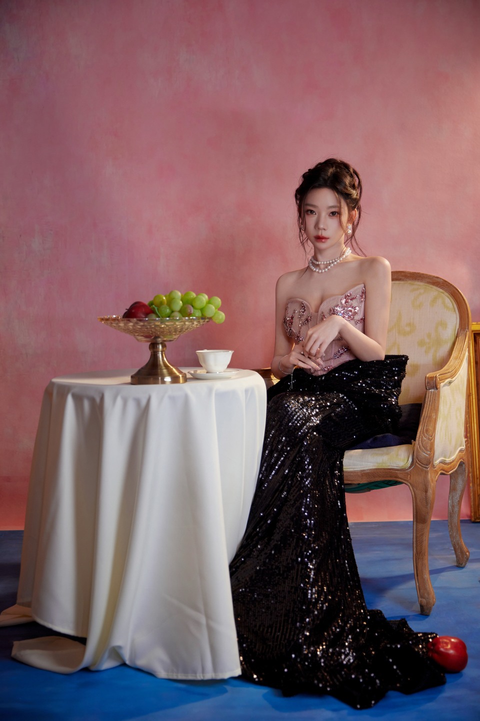 张紫宁淡粉邂逅一场暗夜 裙摆摇曳是闪耀的信号
