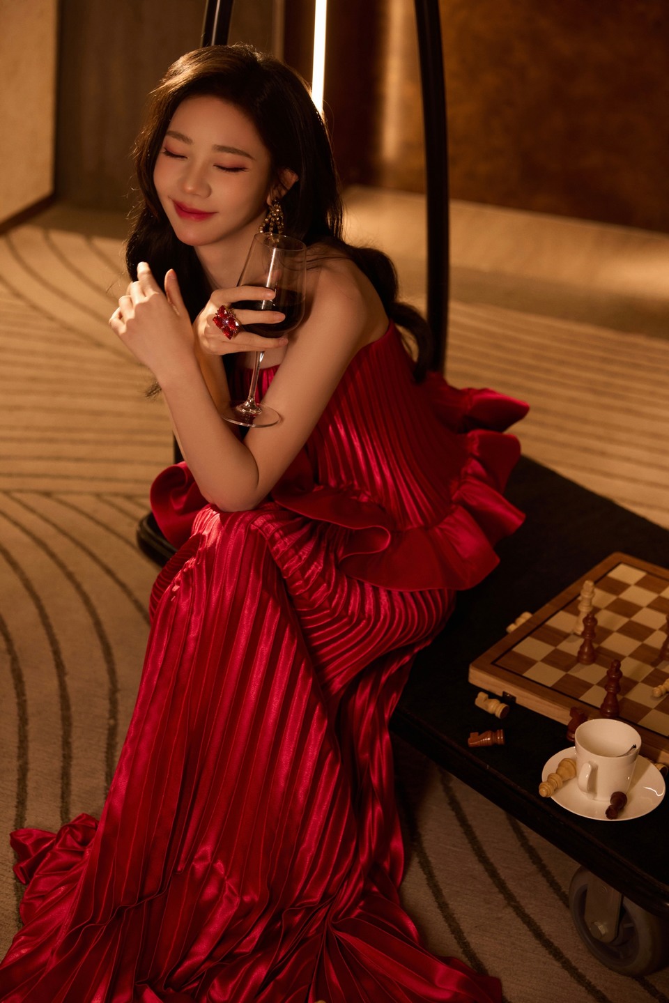 张紫宁自在享受惬意时光 红玫灼灼明媚夺目