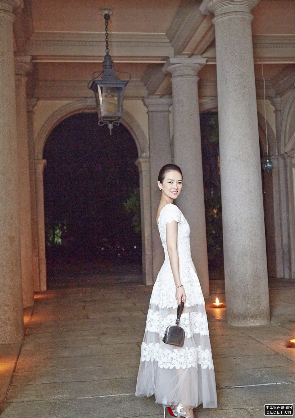 章子怡米兰出席活动 白色蕾丝长裙宛若公主