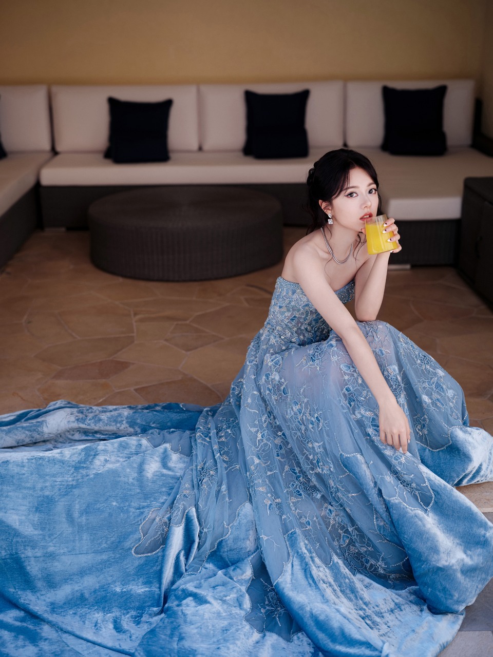 赵今麦水池边水波光影 蓝光倾泻炽热流动