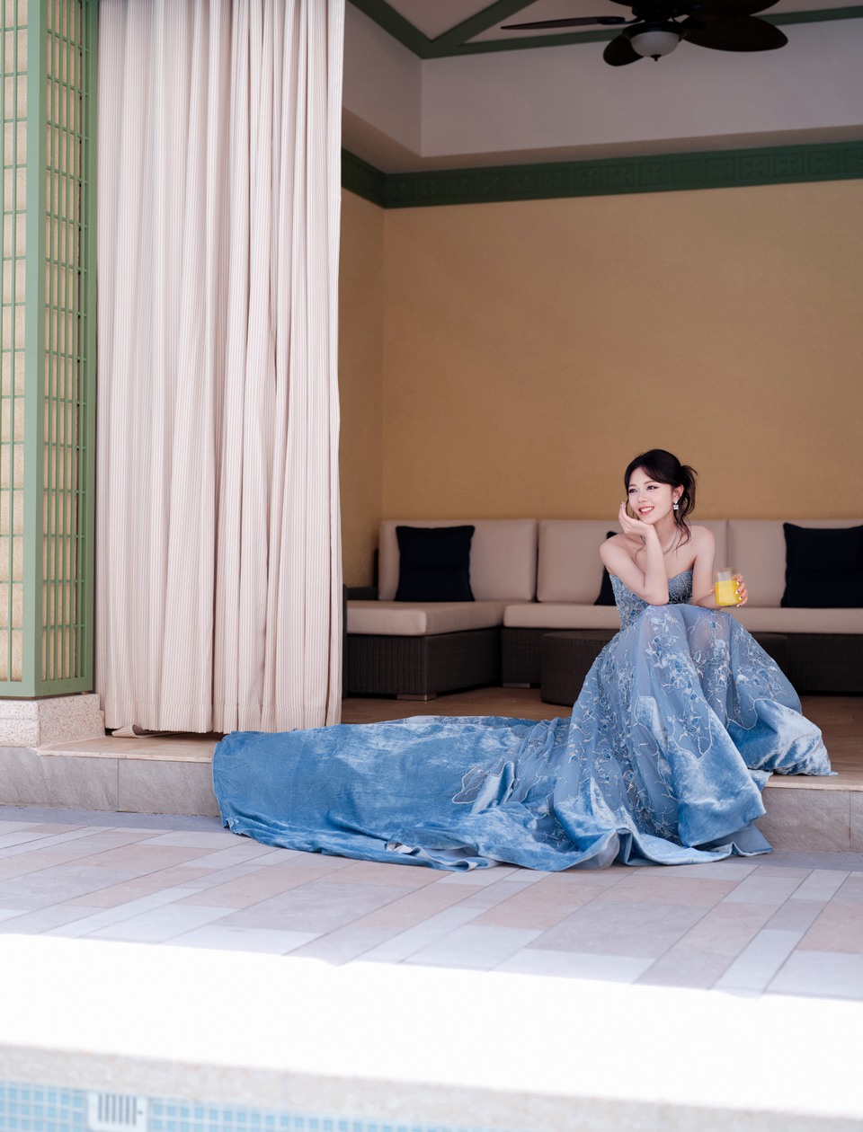 赵今麦水池边水波光影 蓝光倾泻炽热流动