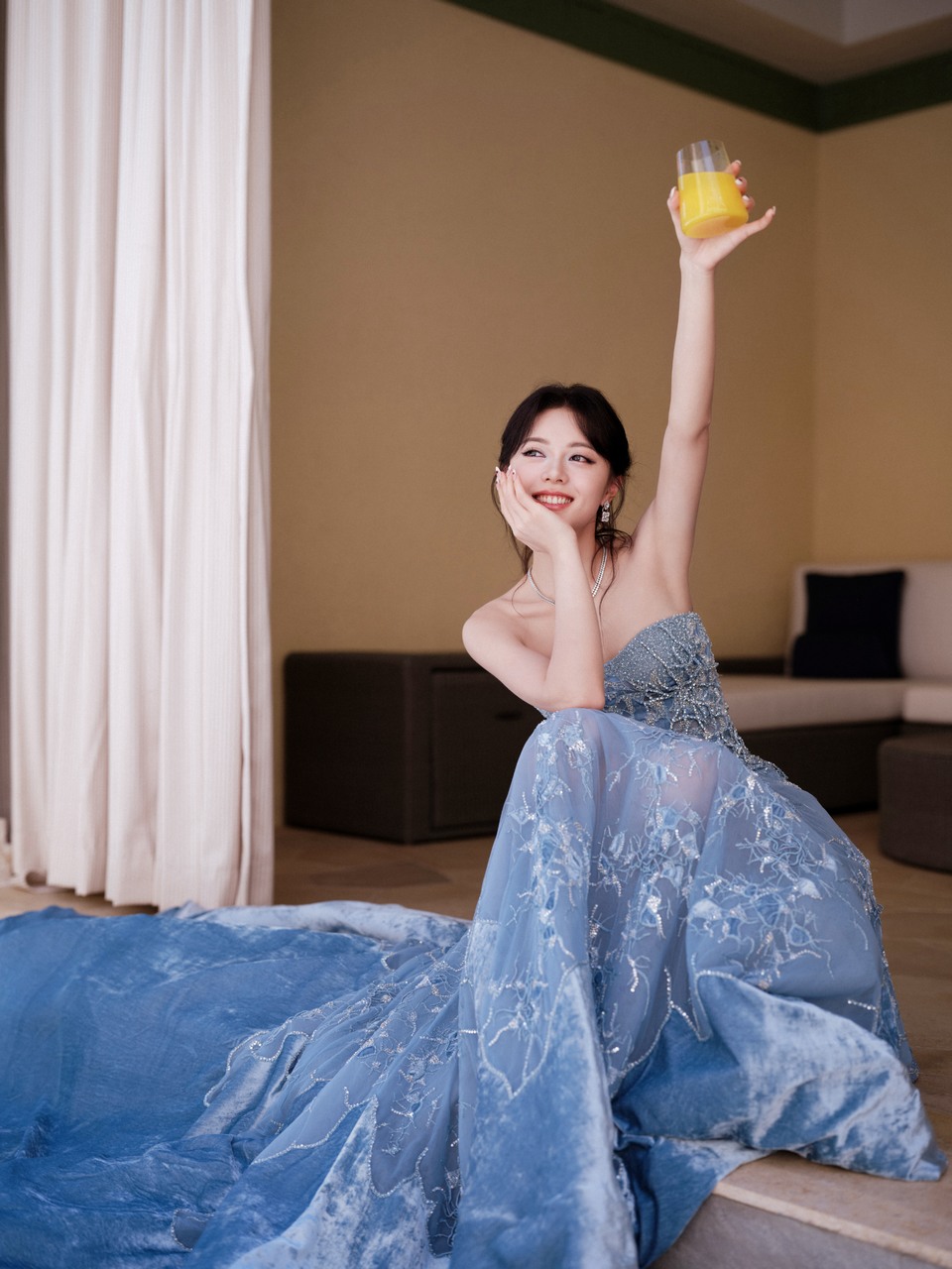 赵今麦水池边水波光影 蓝光倾泻炽热流动