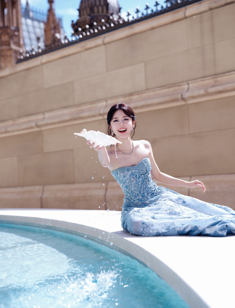 赵今麦水池边水波光影 蓝光倾泻炽热流动