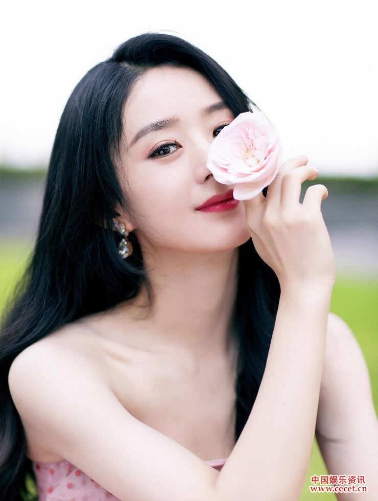 赵丽颖甜美造型 一袭粉色波点连衣裙粉粉嫩嫩