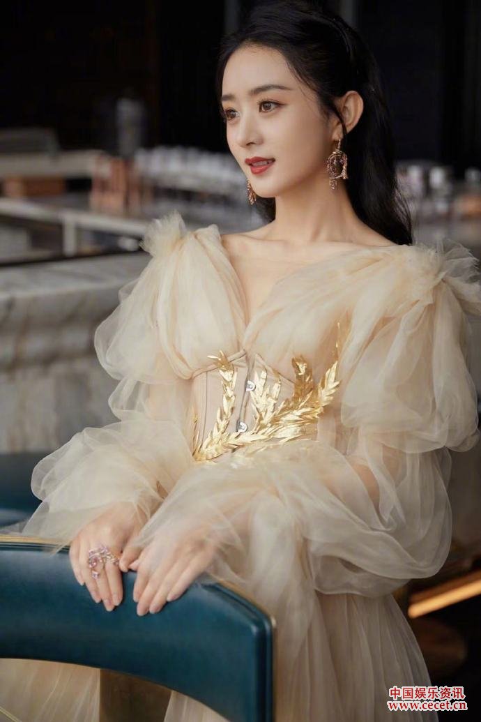 赵丽颖轻纱鎏金裙造型 举手投足尽显温婉气质
