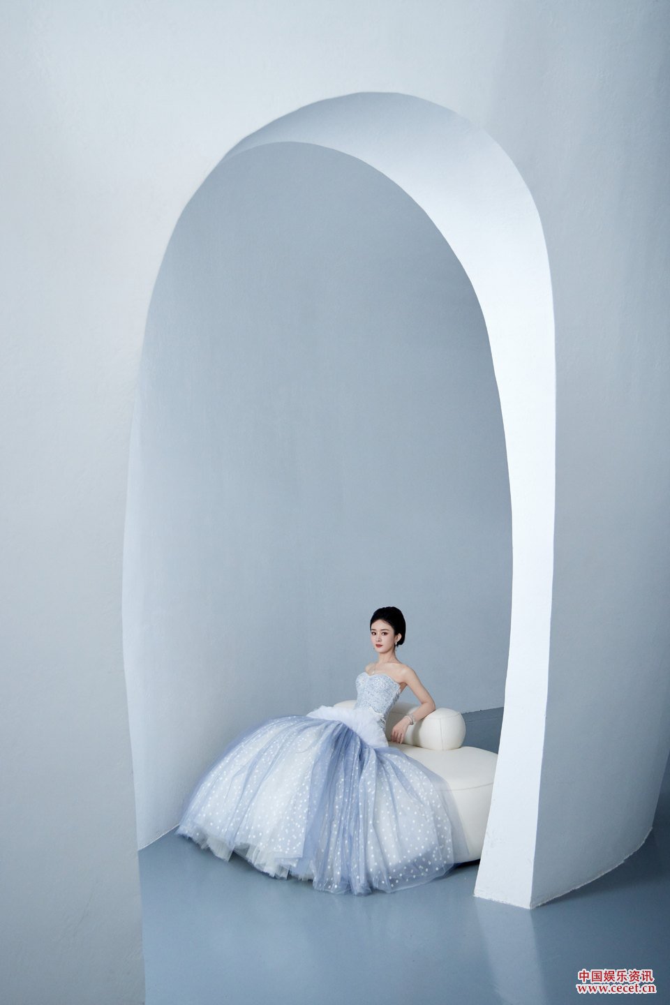赵丽颖纱裙踏纯白梦境 若曦光铺洒迷媚万千