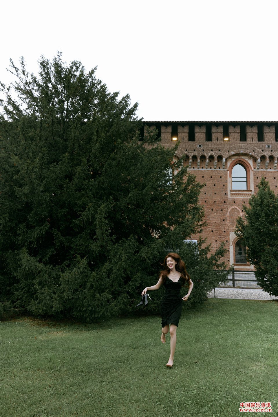 赵露思置身城堡随拍 一头波浪卷发温婉动人