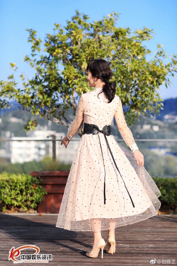 赵雅芝浅色轻纱长裙照 身材挺拔优雅大方