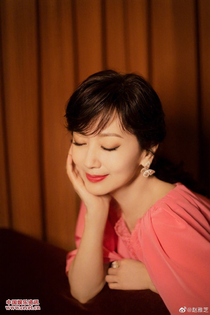 赵雅芝粉红色连衣裙照 气色姣好优雅大方