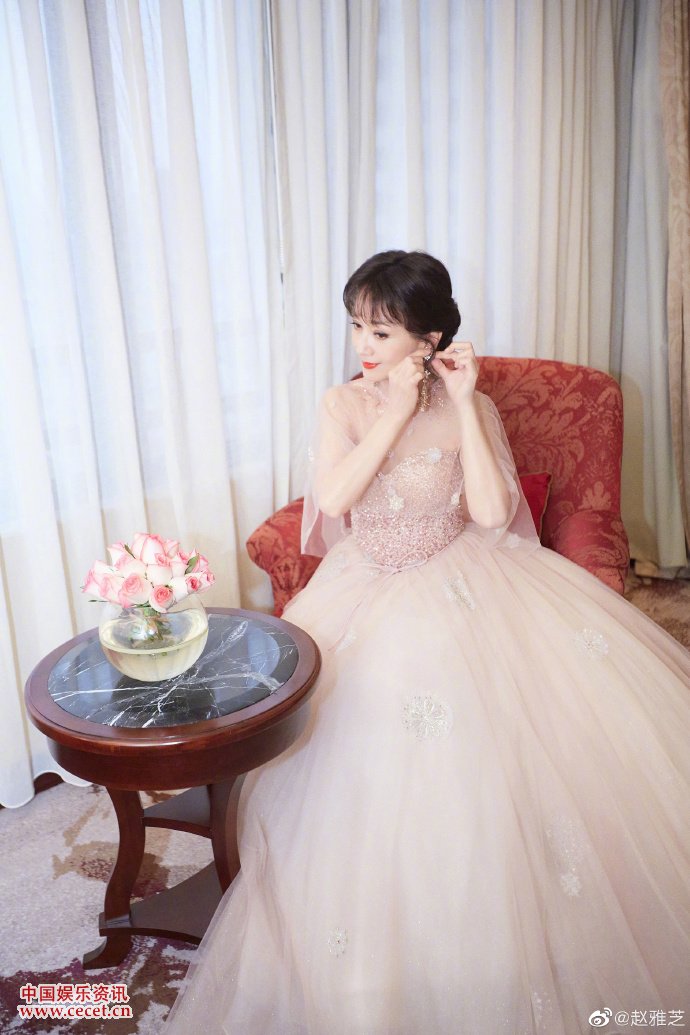 赵雅芝身穿粉色星光长裙的她尽显大气优雅