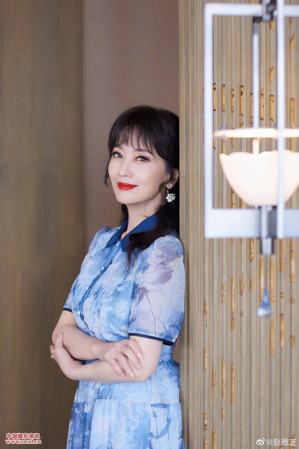 赵雅芝蓝色长裙美照 静谧的蓝如水一样的平和