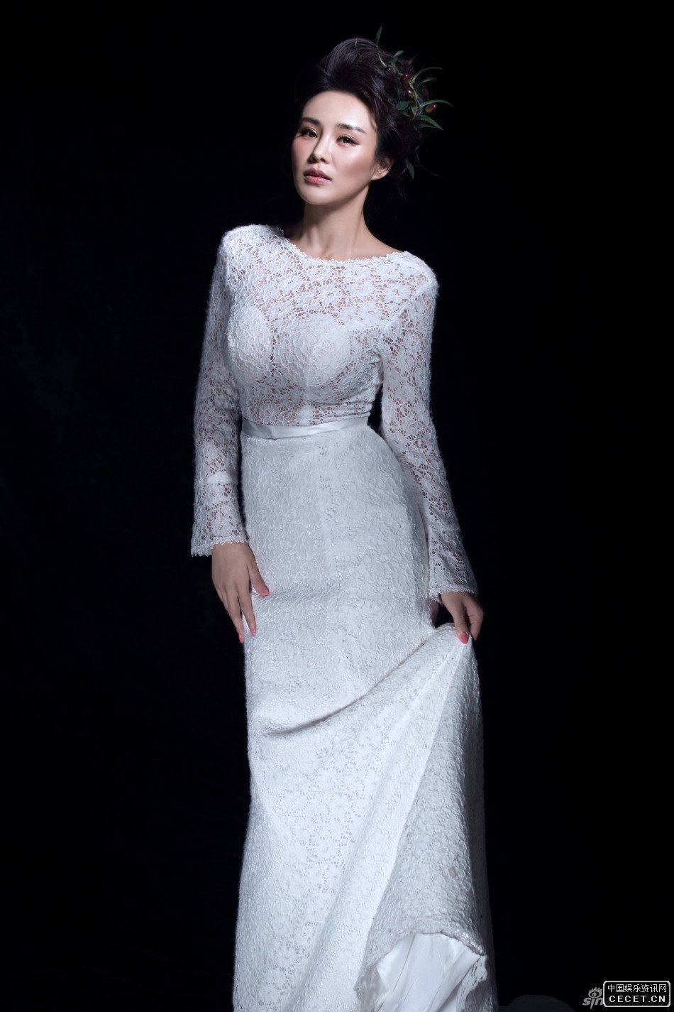 郑伊涵露背礼服写真 镂空蕾丝花纹优雅性感