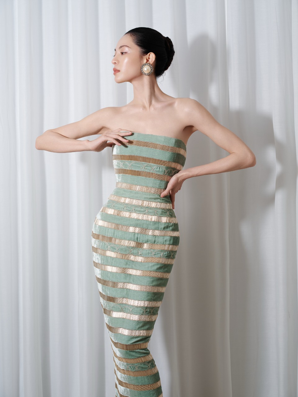秦岚抹胸长裙勾勒从容