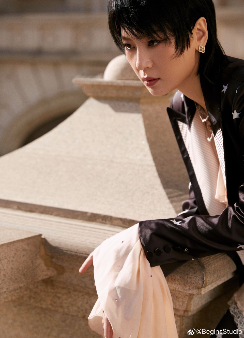 周笔畅星空缎面西装复古与优雅并存 潇洒之姿尽显