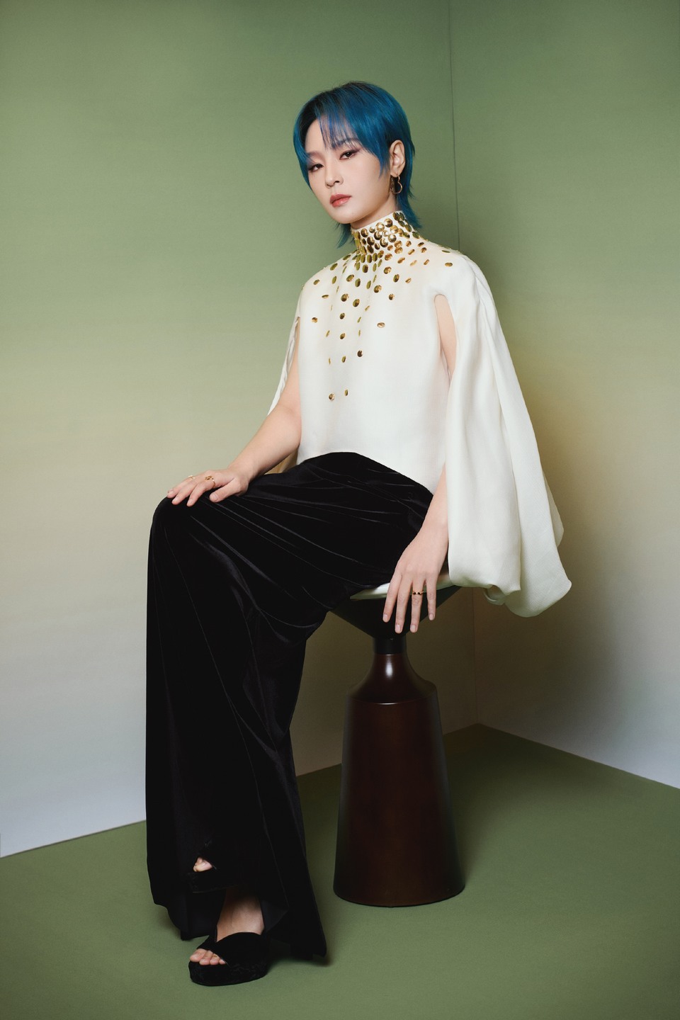 周笔畅白洁如月光轻披于身 金色点缀于清冷低调中