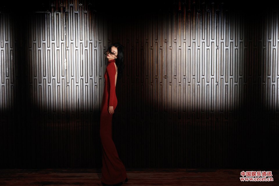 周冬雨一袭红色长裙秀美背 眼神撩人优雅大气