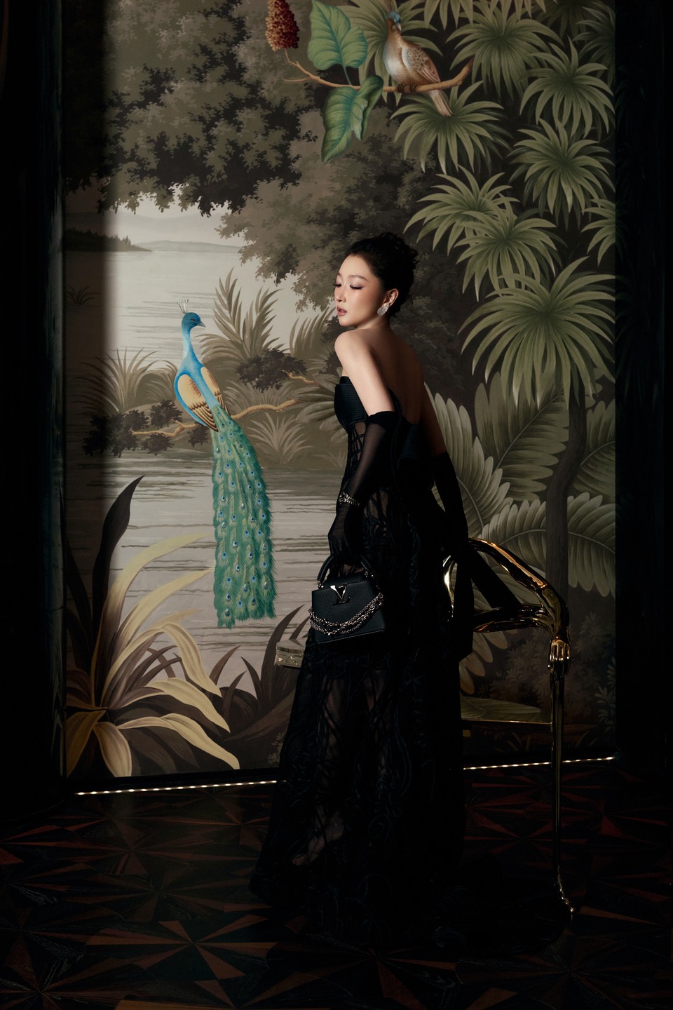 迪丽热巴暗夜深邃长裙缀满细闪星