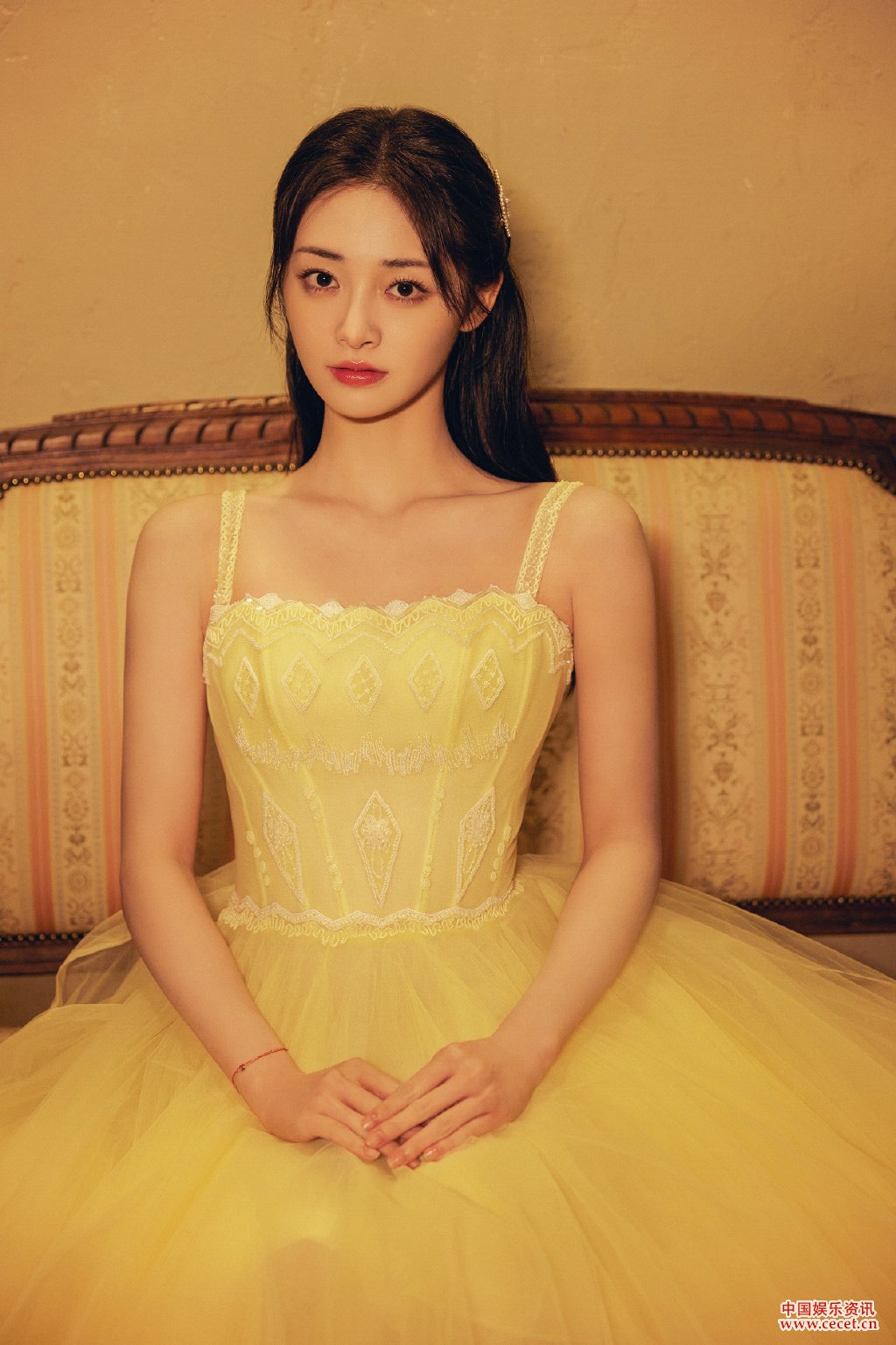 周洁琼明黄色公主裙照 美如仙子温婉动人