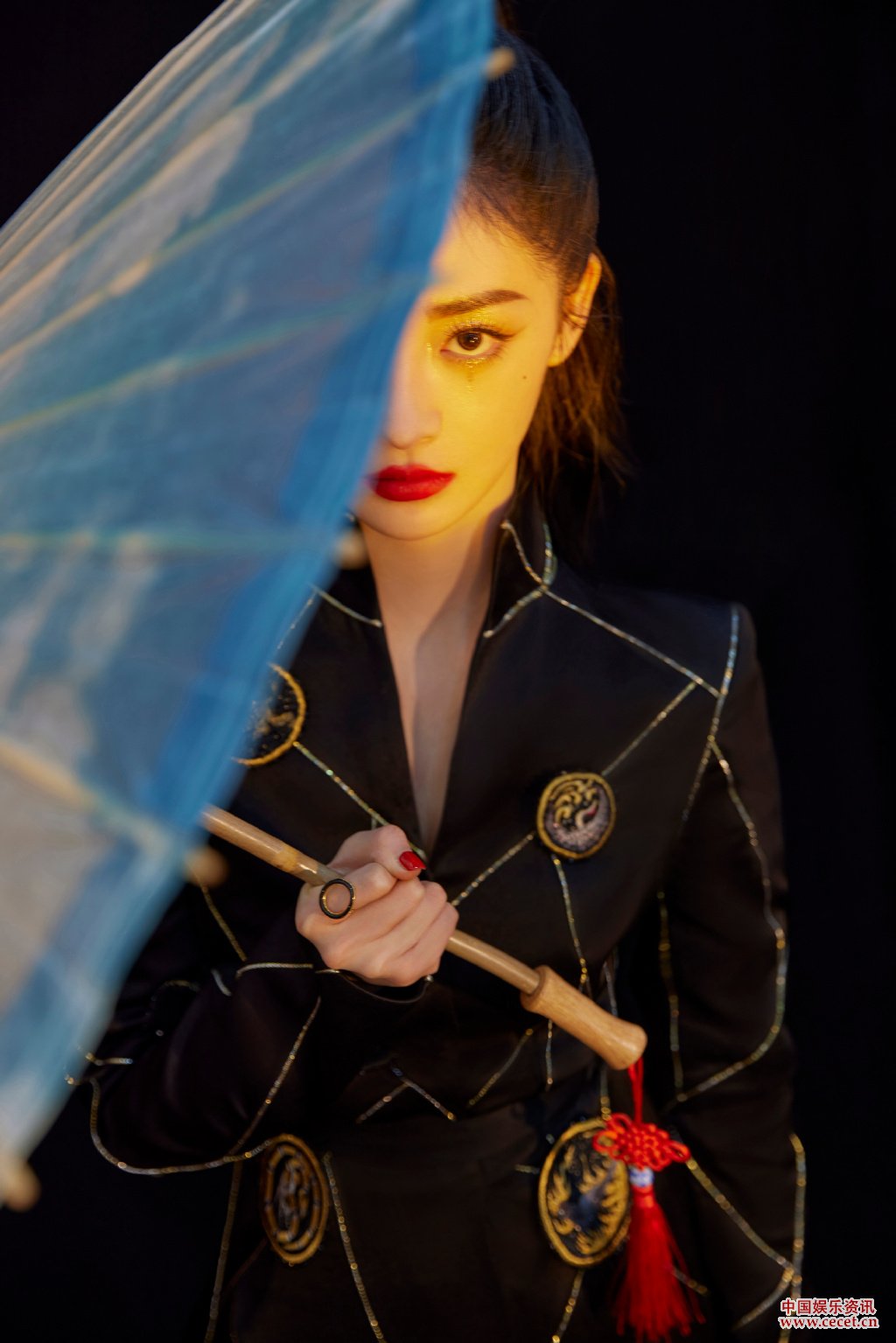 周洁琼金丝水墨裙手持弓箭于红墙之前一触即发