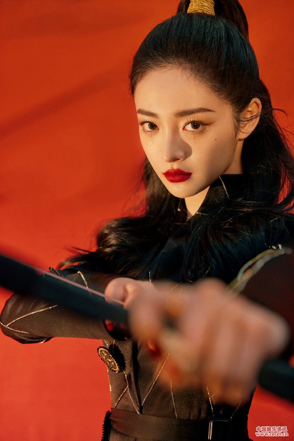 周洁琼金丝水墨裙手持弓箭于红墙之前一触即发