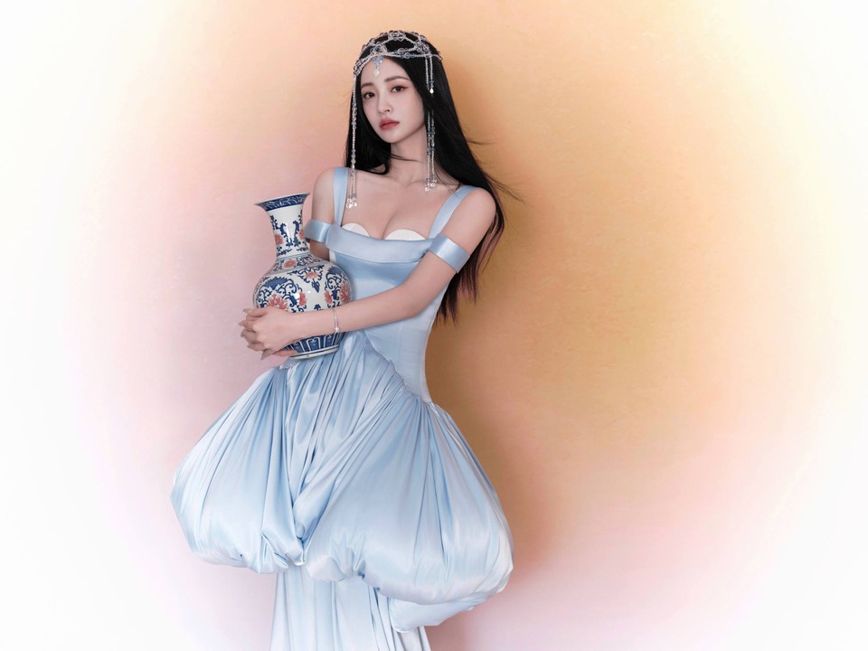 单依纯拍摄复古千金妆