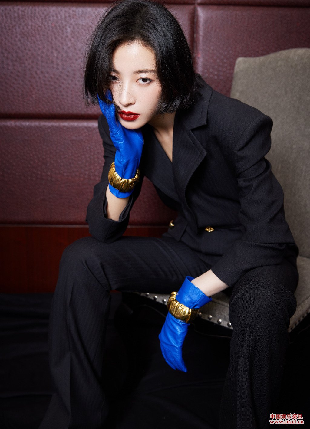 周雨彤黑与蓝的极致碰撞 酷飒恣意气场全开