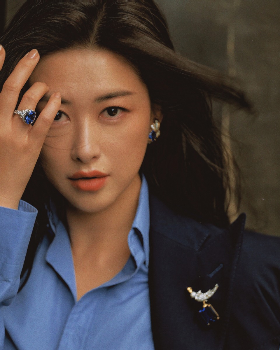朱珠蓝调叠印知性漫溢 以柔韧之力破译时尚密码
