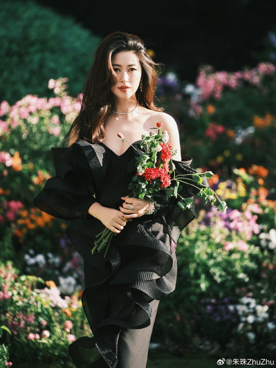 朱珠在花影婆娑的世界 做一朵自在的黑色玫瑰