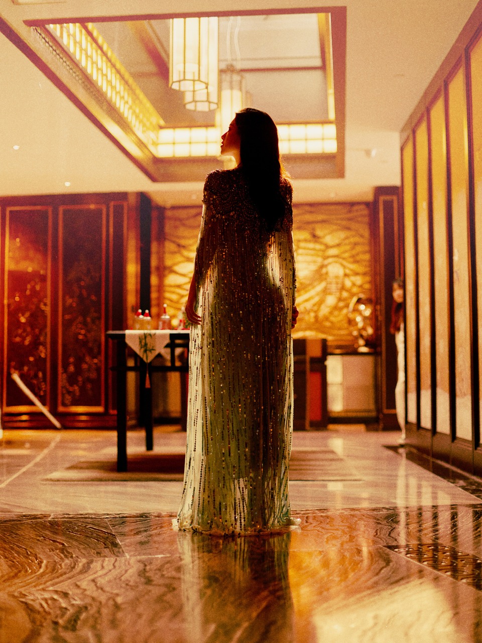 马伊琍在光斑融融的平遥老城